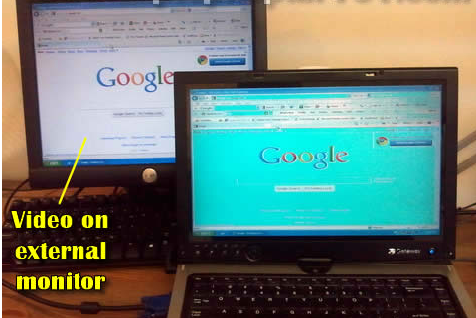 Beberapa laptop mendeteksi monitor eksternal secara otomatis dan mulai menampilkan gambar di kedua layar langsung pada saat start.
