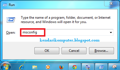 Langkah pertama, Klik Start kemudian pada menu search ketikan msconfig atau tekan tombol Home + R,