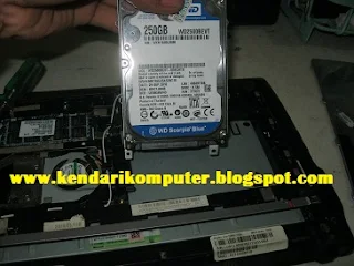 Sampai pada tahap ini hardik sudah berhasil dilepas, lihat gambar Acer AO D260 menggunakan hardisk berkapasitas 250GB merk WD.
