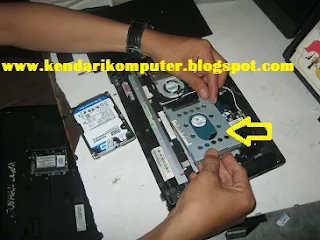 Setelah itu lepaskan hardisk dari rumah pelindungnya, dengan melepas 4 baut pada bagian sisi hardisk.
