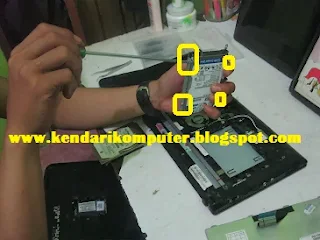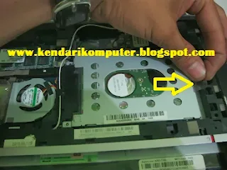 Setelah keyboard dilepas, pada bagian belakang terdapat connector keyboard lepaskan seperti pada gambar.
