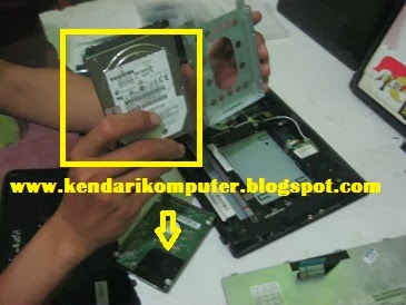 Setelah melepas baut, tarik hardisk seperti pada gambar dibawah.