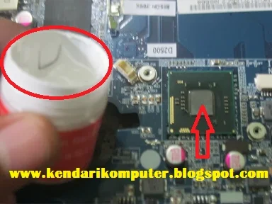 Kemudian saya menyiapkan pasta thermal dan menolesinya sedikit pada bagian atas processor,kemudian saya memasang kembali kipas processornya. Lihat pada gambar di atas.