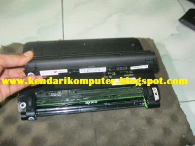 Step pertama, saya melepaskan baterai netbook ini. Hal ini selalu saya lakukan setiap menangani laptop. Apalagi saat ini kita akan membongkar semua bagian netbook axioo ini.