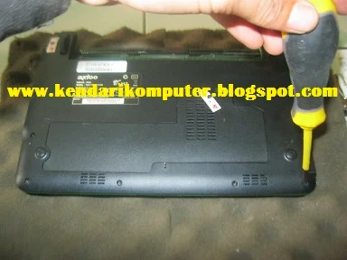 Kemudian saya melepas baut pada bagian belakang netbook, anda juga bisa memulai proses melepas bagian bagian netbook ini dari bagian belakang terlebih dahulu.