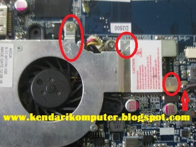 Kemudian saya membuka baut sesuai dengan urutan yang tertera pada kipas netbook ini.