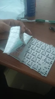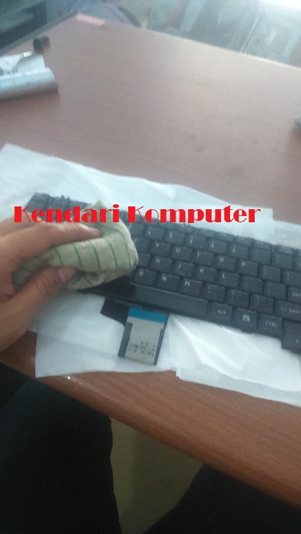 Bersihkan dengan tissue/kai. sebaiknya gunakan kain yang menyerap minyak/air, untuk menghilangkan kotoran yang keluar dari dalam keyboard.