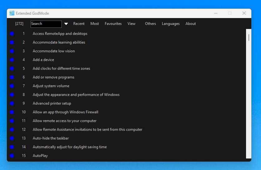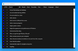 Extended GodMode adalah utilitas yang memungkinkan pengguna untuk mengakses pengaturan sistem dengan mudah dan cepat pada Windows. Software ini didasarkan pada fungsi bawaan Windows, dan menambahkan kemampuan baru seperti Admin Tools dan elemen Control Panel.