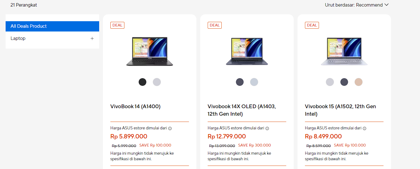 Kunjungi Asus Online Store dan pilih laptop Asus VivoBook atau ZenBook yang ingin Anda beli.
