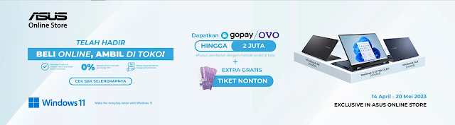 Kabar gembira bagi para pecinta produk Asus! Asus Online Store menghadirkan promo menarik yang berlangsung dari 14 April hingga 20 Mei 2023. Promo ini berlaku untuk pembelian seluruh laptop Asus VivoBook dan ZenBook dengan metode "Beli Online, Ambil di Toko". Dapatkan berbagai keuntungan dari promo ini, mulai dari kemudahan berbelanja hingga hadiah menarik berupa saldo GoPay atau OVO senilai 2 juta rupiah dan tiket nonton gratis! Berikut ulasan lengkap mengenai promo spesial Asus ini.