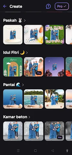 Templat Musiman: Gunakan templat latar belakang khusus Lebaran dan acara lainnya untuk memeriahkan foto Anda.