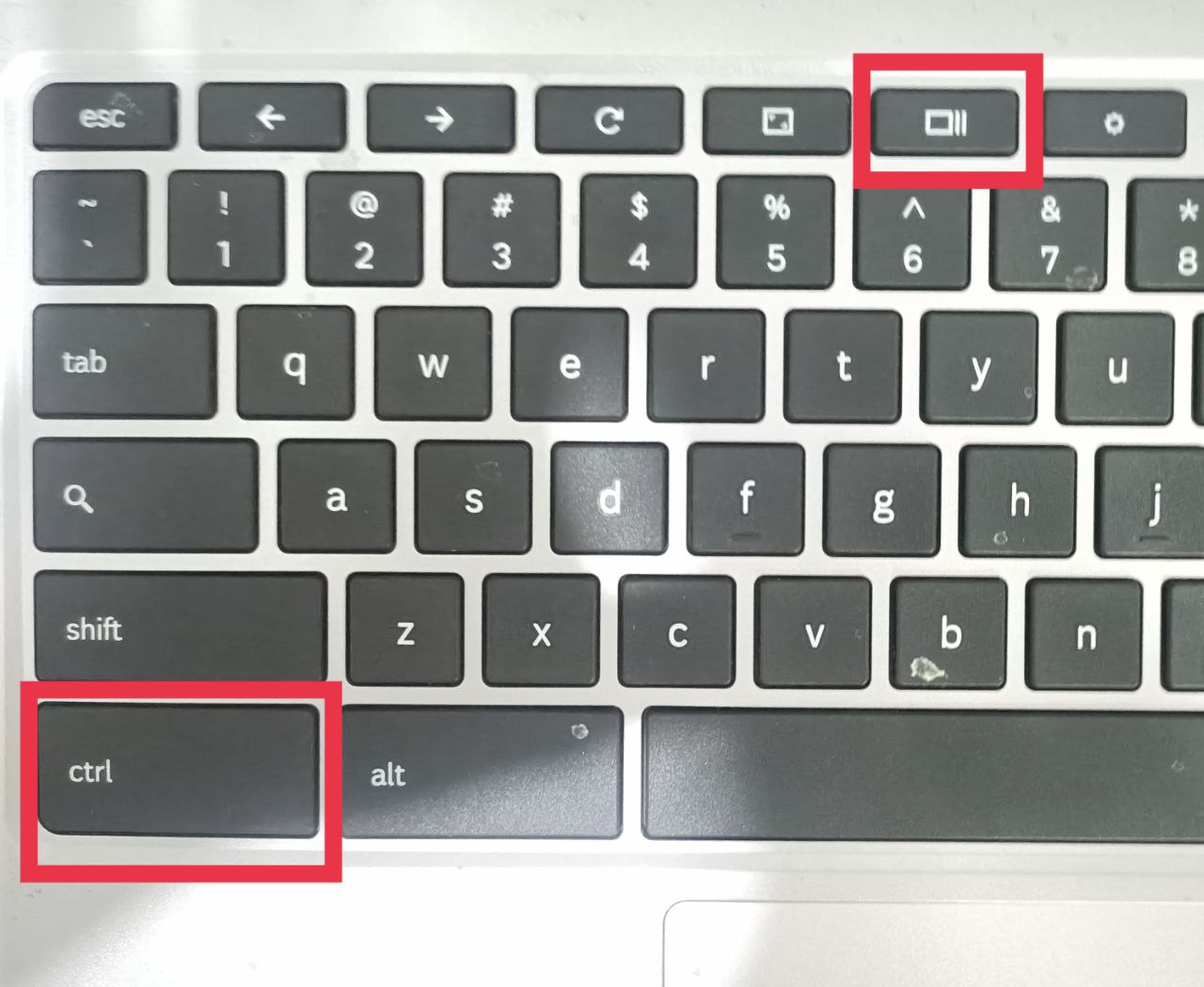 tombol “Ctrl” dan “Switcher” secara bersamaan pada keyboard Chromebook kalian.