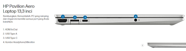 Laptop HP Pavilion Aero 13-be1000AU ini memiliki