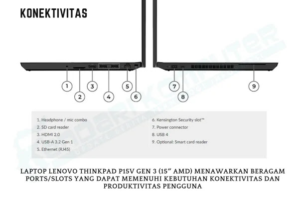 Ports/Slots: Kenyamanan dan Konektivitas yang Luas pada Lenovo ThinkPad P15v Gen 3 (15″ AMD)