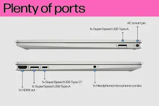 Menjaga koneksi menjadi mudah dengan HP Pavilion Aero 13. Laptop ini dilengkapi dengan port USB Type-C® dengan kecepatan sinyal 10Gbps, mendukung USB Power Delivery dan DisplayPort™ 1.4. Dua port USB Type-A dengan sinyal 5Gbps, port HDMI 2.1, dan pin AC pintar memberikan pilihan konektivitas yang serbaguna. Kartu nirkabel Realtek Wi-Fi 6 (2x2) dan Bluetooth® 5.2 menyediakan kecepatan data ultra-cepat dan koneksi nirkabel yang lancar.
