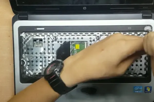 Setelah membuka casing laptop, Anda dapat melihat berbagai komponen laptop seperti harddisk, RAM, atau bahkan motherboard. Jika Anda perlu mengganti salah satu komponen ini, lepaskan kabel sambungan terlebih dahulu dengan hati-hati. Jangan lupa perhatikan posisi kabel agar mudah dipasang kembali.