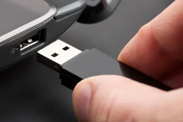 - Colokkan flash disk ke port USB laptop, dan tunggu hingga laptop berhasil mendeteksi perangkat flash disk baru.