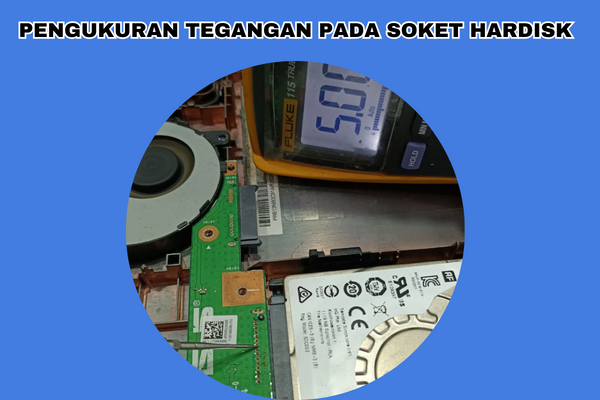 Gunakan multitester untuk mengukur tegangan di pin soket hardisk pada motherboard.